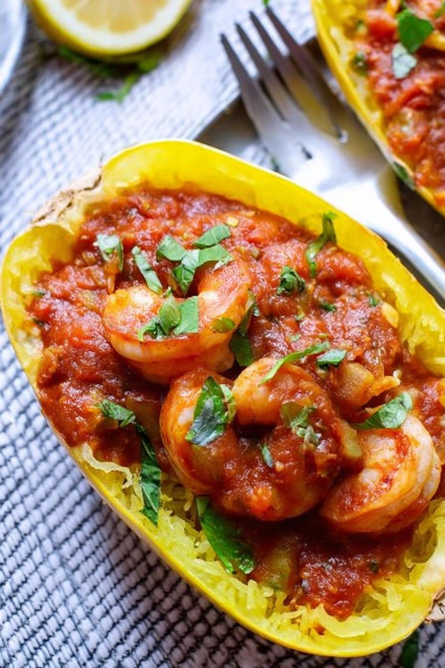 Abóbora Espaguete ao Molho Marinara com Camarão
