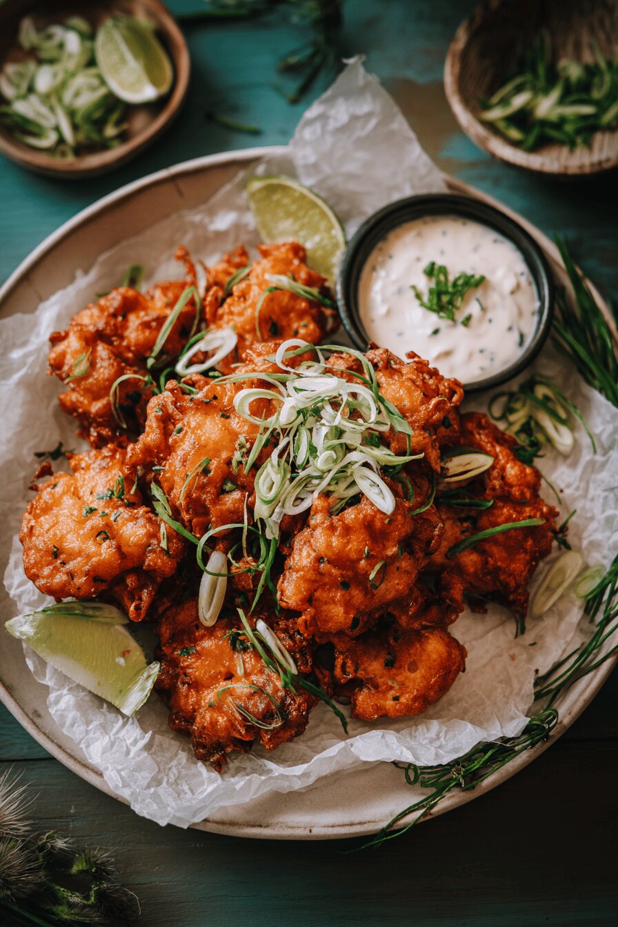 - Em prato, faça um traço ou pequenas montanhas de maionese de limão. Disponha os acras ao lado ou por cima. Finalize com as tirinhas de cebolinha mornas/crisp que estavam de molho e salpique páprica para cor. Esse contraste de texturas e cores traz visual e sabor interessantes, embora simples.