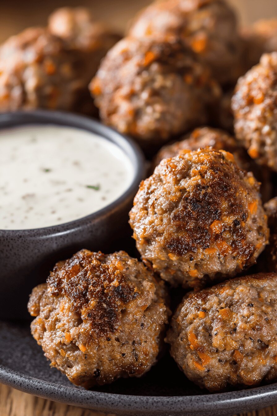 Carne moída e cenoura. Mistura simples. Um toque de alho-poró substitui a cebola tradicional. Pão integral molhado no leite para dar firmeza. Ovo para juntar tudo. Queijo parmesão ralado entra para levantar o sabor. Molda-se sem grudar, mãos untadas de óleo salvam. Assa-se sob o grill até dourar, cuidado pra não ressecar. Quase quatro dezenas na assadeira, cada uma com seu tamanho exato. Fácil de fazer, tirar do forno e servir. Se quiser, molho de tomate ou até um molho picante pra deixar mais brasileiro. Sem complicação, petisco, lanche, ou complemento de almoço. Meio leve, meio robusto. Quem tem crianças aprova fácil. Dá para congelar e ter sempre à mão.