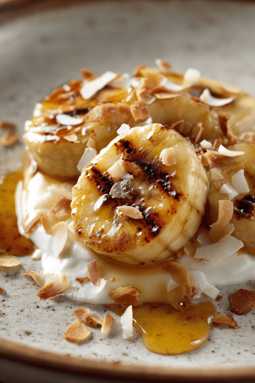 Banana assada envolta em papel alumínio com açúcar mascavo e rum. Incorpora creme de leite com toque de baunilha no lugar do creme tradicional. Substituição do rum por conhaque para um sabor diferente. Troca de açúcar mascavo por açúcar demerara, trazendo notas mais sutis. A banana tem seu açúcar realçado, caramelizado no calor, sob papelote que retém vapores. O tempo de cozimento oscila para garantir maciez sem desintegração. Receita prática para churrasco ou forno.