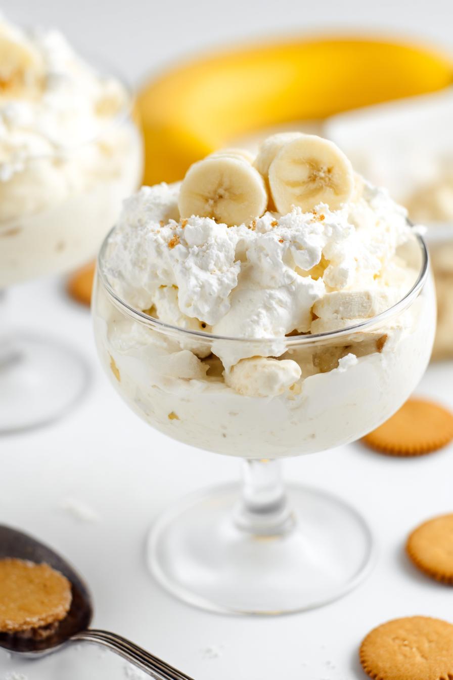 Uma sobremesa refrescante que mistura queijo cremoso batido, pudim instantâneo de banana com toque de extrato natural, cookies crocantes e marshmallows macios, finalizada com fatias de banana fresca. Fácil, rápida, e com textura aerada, ideal para meses quentes ou quando a vontade de algo doce aparece do nada.