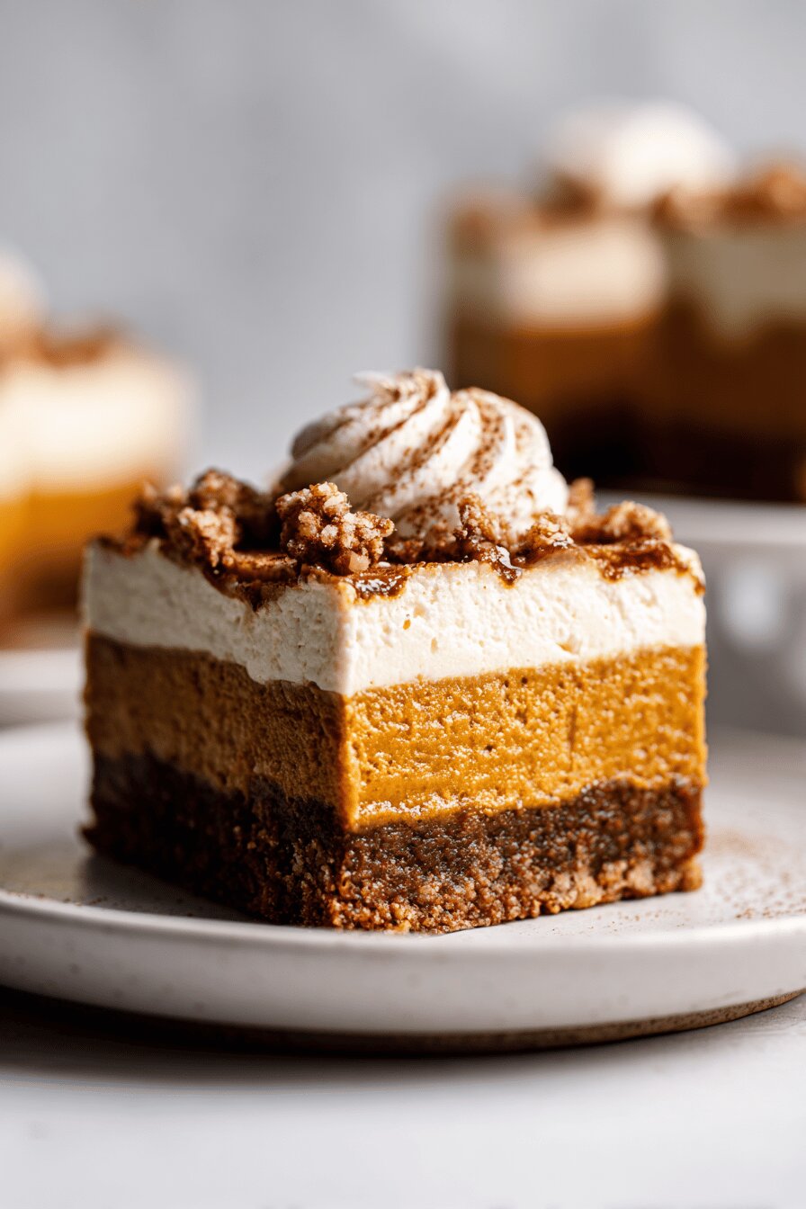 Barras cremosas de cheesecake com purê de abóbora e um toque intenso de melassa e especiarias. Crosta crocante feita com biscoito maria e coco ralado substituindo parte da farinha tradicional. A gordura trocada para óleo de coco traz um sabor mais tropical enquanto mantém a textura. Tempo ajustado para que a crosta fique firme, mas sem endurecer demais, e a mistura de recheio com duas etapas para criar um efeito marmorizado. Aroma envolvente, textura aveludada na cobertura de abóbora. Receita prática, funciona bem com creme azedo no lugar do iogurte e um pouco mais de mel para quem gosta de docinho marcante. Conserva fácil até uma semana na geladeira bem fechada.