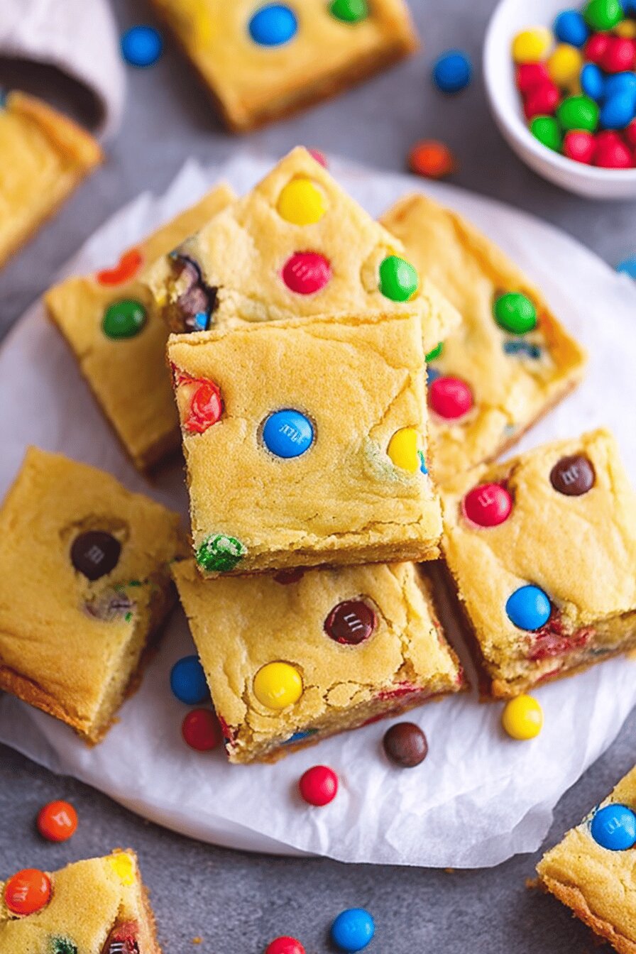 Essas barrinhas de cookie com M&M’s surgiram da tentativa de dar uma repaginada na mistura clássica de bolo, trazendo textura mais rica e visual colorido sem complicação. Testei trocar a água por leite para deixar a massa mais gostosa no toque e reduzir o óleo para equilibrar a umidade — funcionou. Incorporei parte dos M&M’s discretamente para preservar as cores vibrantes, e o restante vai direto por cima para garantir crocância extra. Visar o dourado leve, com centro úmido, é essencial para o sucesso e para evitar que fiquem secos igual sapato velho. Me jogo nesse aroma doce que inunda a cozinha e é impossível resistir à vontade de pegar uma agora mesmo. Ideal para servir em festas ou deixar na lancheira sem erro.