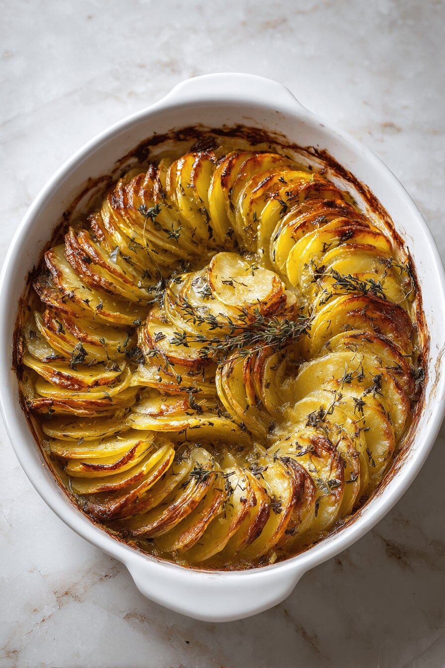 Versão brasileira do clássico francês Pommes de terre boulangère, adaptei com manteiga de garrafa e caldo de legumes caseiro, pra fugir do óbvio e valorizar o sabor. Três horas e tanto no forno, sem pressa, pra deixar batata cremosa e o perfume dos cebolas caramelizados. Usei batata Asterix no lugar da Russet, que é mais comum aqui, resultado ficou incrível, quase um abraço em forma de prato. Vinho branco secou lentamente, aroma do alecrim fresco se espalhou pela casa enquanto o forno trabalhava de leve. Gratinar bem na última meia hora, mas sempre de olho pra não queimar. Cabou que virou meu prato de inverno preferido, perfeito com uma saladinha ácida pra cortar a gordura.
