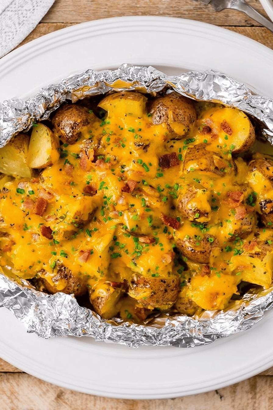Batatas cozidas na slow cooker com bacon crocante, queijo e tempero ranch. A montagem em camadas garante sabor equilibrado. Bacon pré-assado para crocância, queijo reservado para gratinar no final. Use cebola roxa para toque adocicado, mas cebola branca funciona. Papel alumínio cobre o prato para criar vapor, evitando batatas secas. Cozimento gradual em fogo alto até maciez, depois gratinado rápido para queijo no ponto. Ideal para reunir família, serve fácil 10 pessoas. Aroma intenso, textura cremosa, com crocância do bacon. Receita adaptada com queijo gouda para sabor mais amanteigado e mais variados nutrientes.