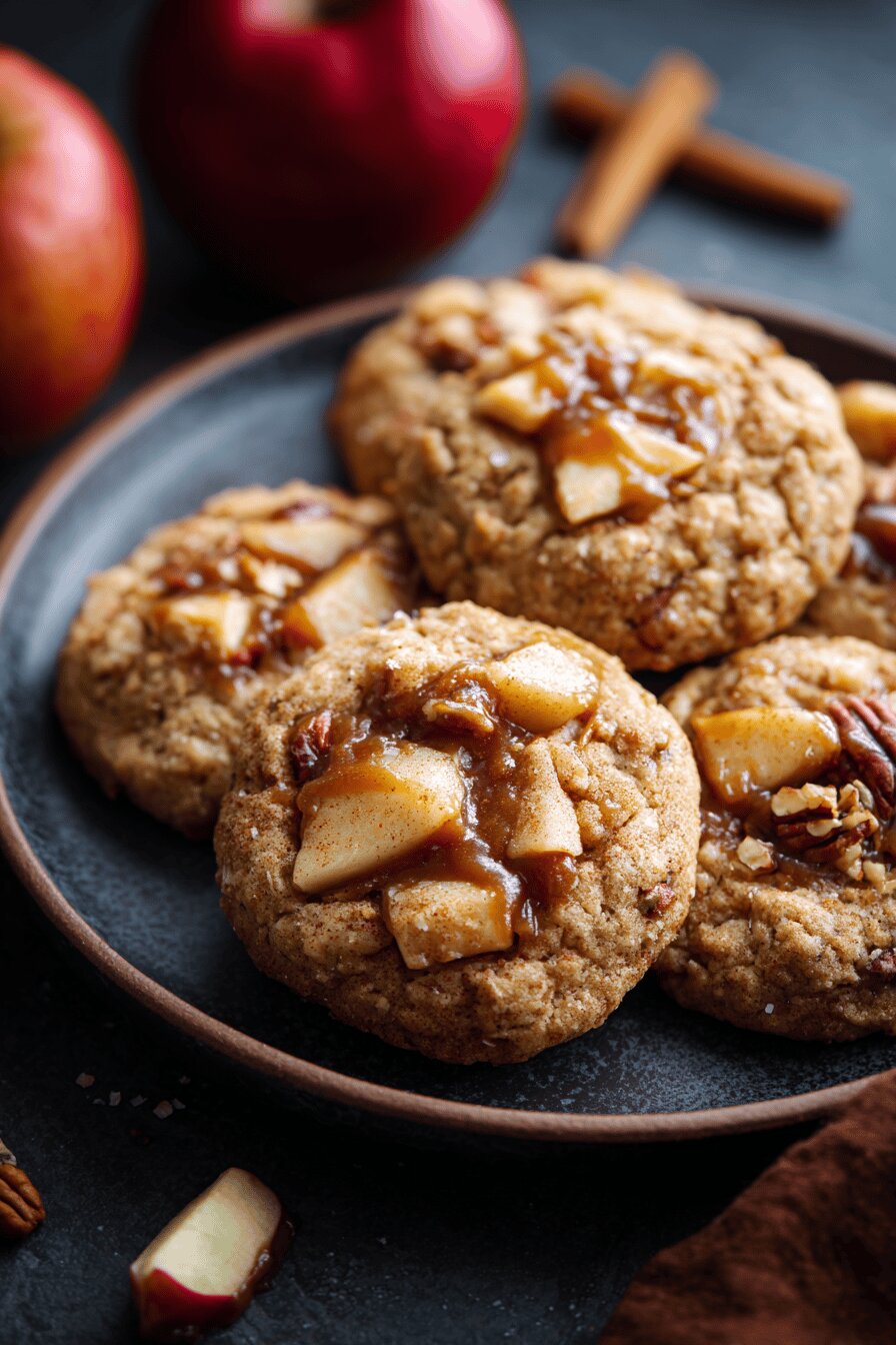 Biscoito que ganha vida com aroma intenso de maçã quente e toque caramelado. Aprendi a não confiar só no tempo do forno — olhe, sinta, observe as beiradas dourarem e o centro ainda molhadinho. A mistura das farinhas da massa traz rusticidade, e o doce de leite com flor de sal traz o tempero brasileiro que me conquistou. Modifiquei quantidades e ingredientes para evitar que ficasse muito doce e seco, afinal viver de biscoito duro ninguém quer. Resultado? Textura balanceada, aroma que limpa a casa, e aquele efeito visual enfeitado com flor de sal que na boca vira festa.