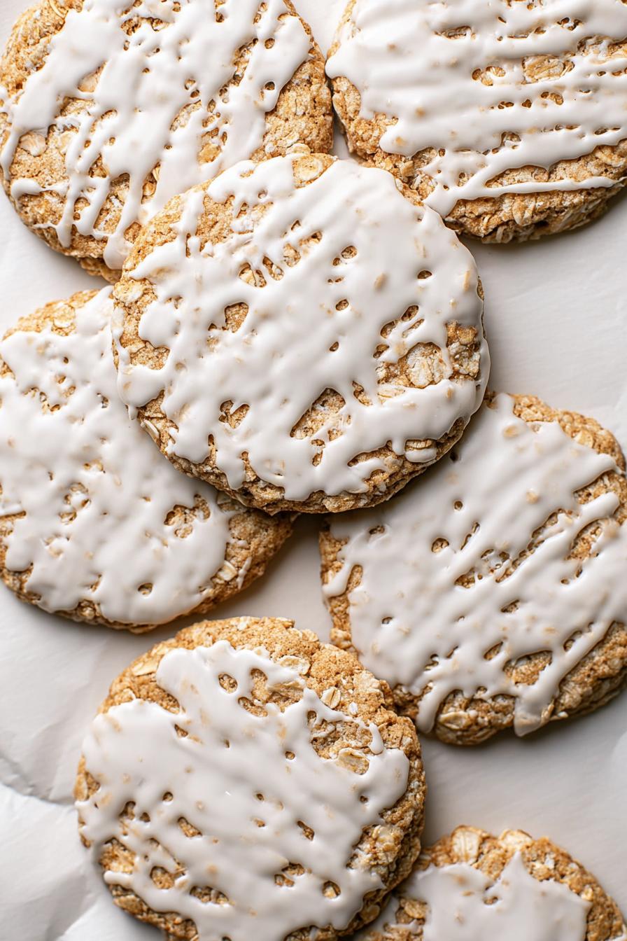 O segredo está no tempo entre dourar a manteiga e esfriar para não cozinhar os ovos. O processamento da aveia na medida certa evita biscoitos muito duros ou oco. Atenção ao ponto do forno, a borda dourar antes do centro endurecer é o momento exato para tirar. Muitas vezes sai antes do tempo oficial do livro e ainda ficam perfeitos. O glacê não vai liso como bolo, o ideal é textura mais espessa, para acordo nos biscoitos sem correr. Dica extra: sempre deixe esfriar completamente antes de mergulhar no glacê, senão ele vai escorrer demais e sujeira até o prato. Guardar num pote com tampa mantém maciez, mas o frio da geladeira pode endurecer demais. Melhor manter em temperatura ambiente.