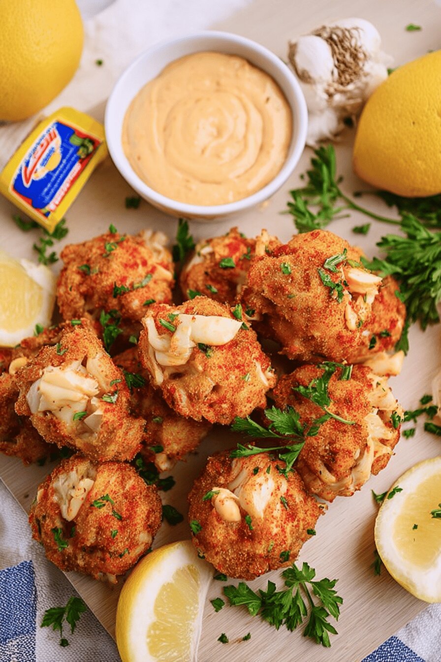 Bolinho de siri feito no forno com toque de maionese e especiarias, crocante por fora e macio por dentro. Usa carne de siri azul em pedaços grandes para textura, combinada com temperos intensos, como Old Bay, limão fresco, e um toque especial de molho inglês e mostarda Dijon. Assa até dourar, finalizado com manteiga derretida para brilho e sabor. Serve com molho para mergulhar à escolha, ideal para petisco ou entrada em encontros informais. Aprende a sentir o ponto certo observando a cor, textura e aroma, evitando erros comuns como bolinhos ressecados ou muito grudados.