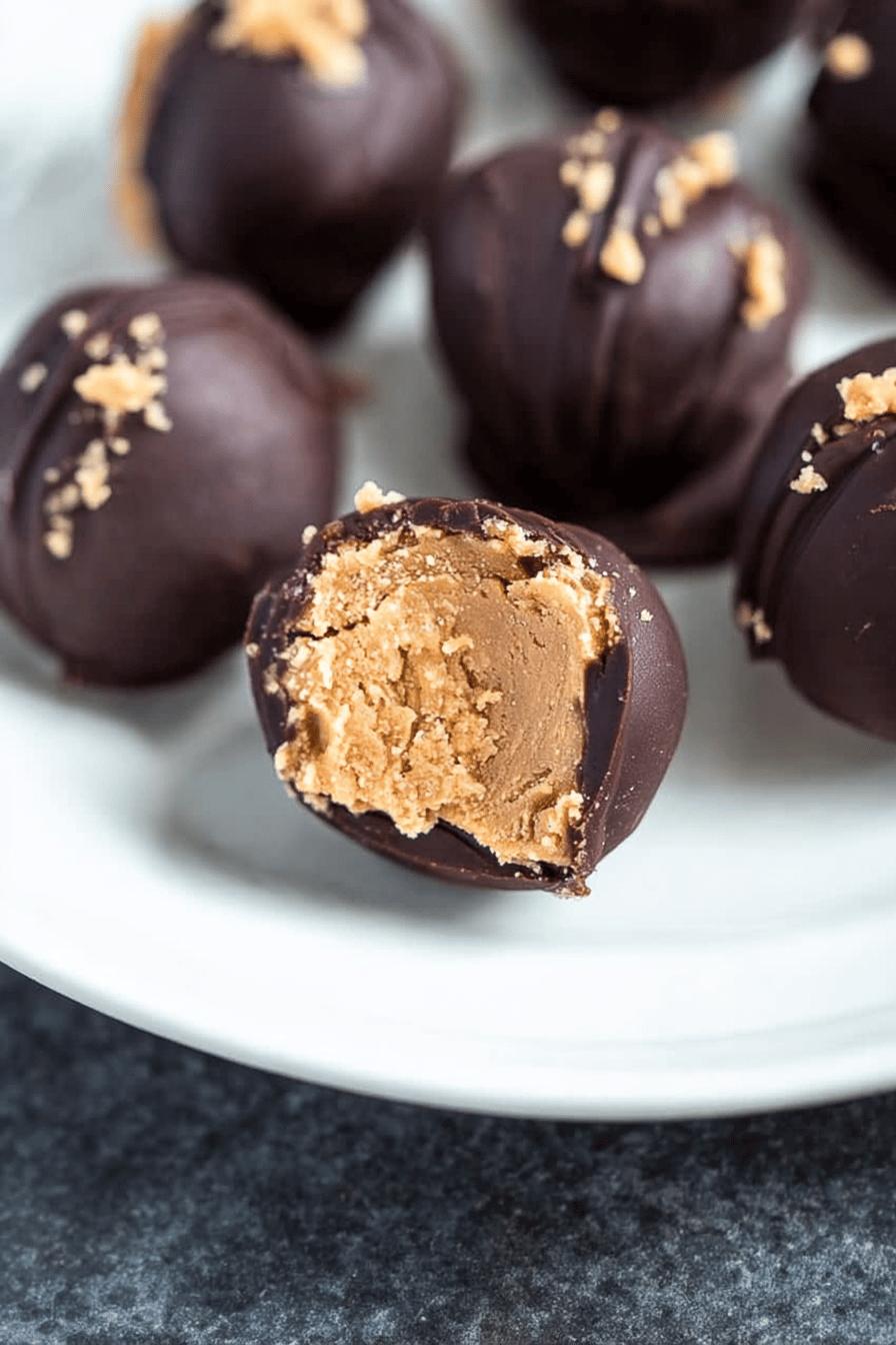 Pequenas bolinhas energéticas feitas com manteiga de amendoim, cacau em pó e farinha de amêndoas, cobertas por chocolate meio amargo derretido com óleo de coco. Uma combinação de textura macia com uma crocância suave por fora, realçada por um toque de sal marinho. Ideal para quem curte sabores intensos e um docinho que dá energia. Fácil de guardar no congelador, rende doze porções. Ingredientes adaptados e tempos ajustados para melhor consistência e sabor.