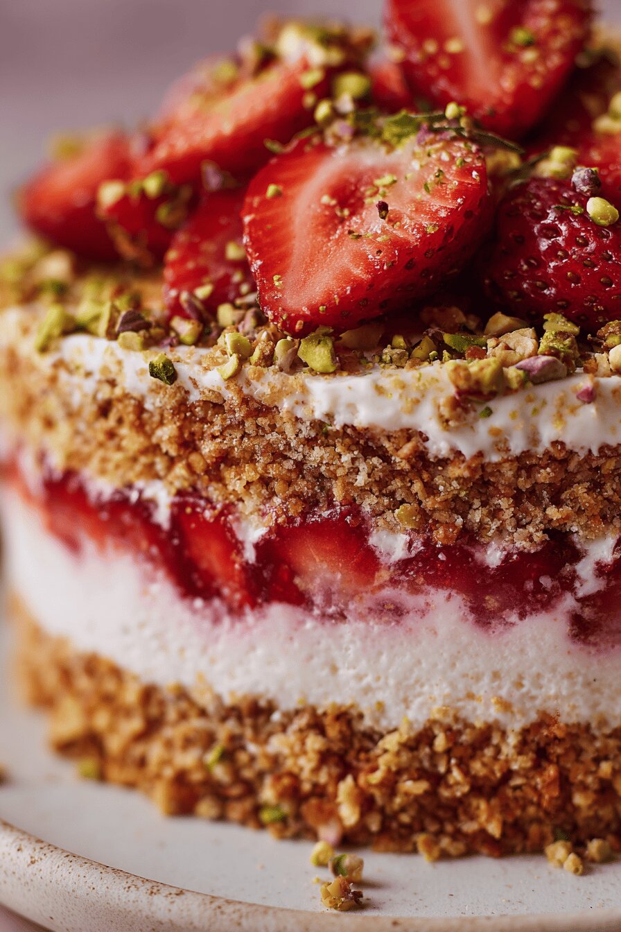 Manteiga em ponto de amolecida ajuda a misturar com farinha e açúcar sem derreter, segurança para crocante ficar em pedaços. Use açúcar demerara para sabor mais caramelizado, funciona bem com o marshmallow triturado que traz uma crocância não usual, mas cuidado pra não misturar demais e derreter os pedacinhos. O iogurte de baunilha deve estar bem amolecido para espalhar fácil, ajuda a compactar camadas. Os morangos precisam ser frescos e maduros para liberar suco com o açúcar e limão, maceração após fatiar é importante para textura no final. Limão fresco, nada de suco engarrafado, equilíbrio ácido para não sobressair demais nem ficar muito doce. O uso da aveia em flocos finos garante crocância equilibrada, não fibrosa demais. A substituição de ingredientes foi pensada pra dar contraste: coco tradicional e marshmallow inusitado, ponto a favor para experimentar com ingredientes locais variados. Tamanho do aro tradicional 20 cm, evita camadas muito altas e proporciona corte fácil.