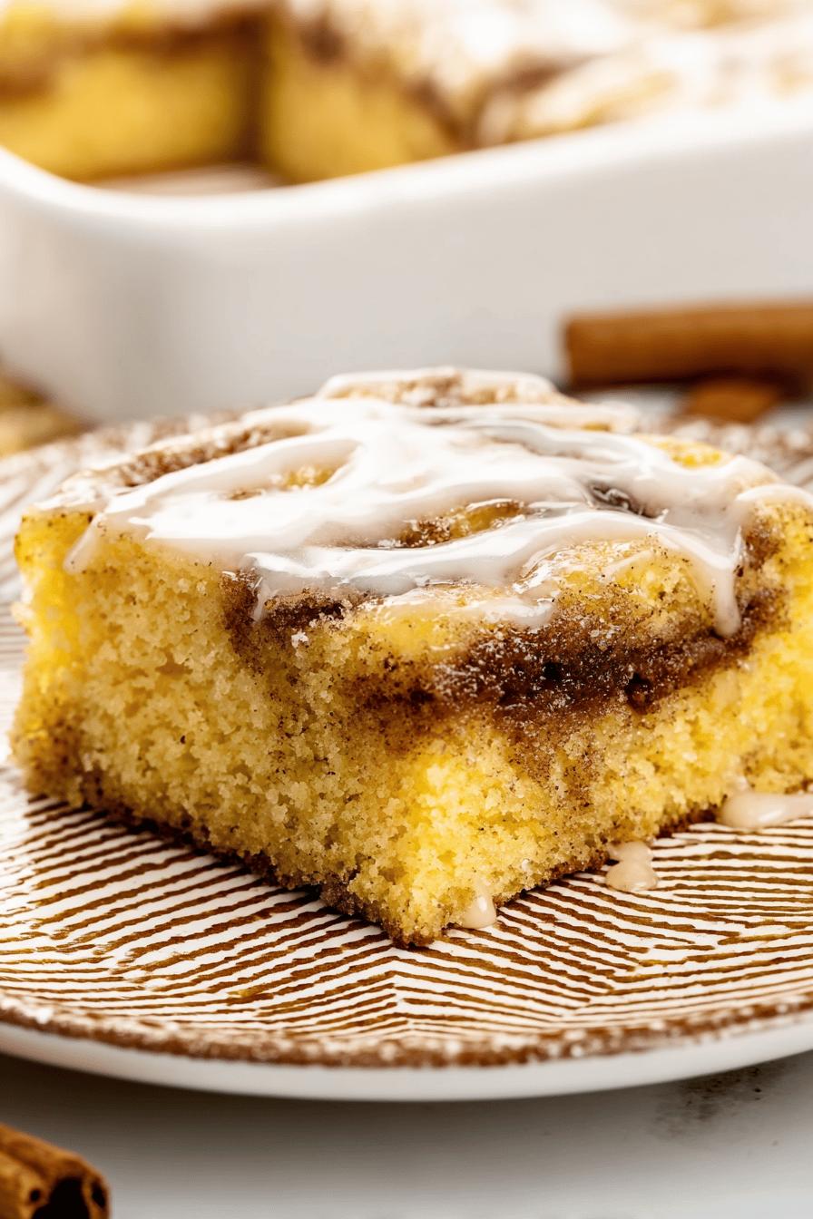 Bolo amarelo com toque de creme azedo e camada generosa de açúcar mascavo com canela. Cobertura branca feita com açúcar de confeiteiro, baunilha e creme, que derrete no calor do bolo recém-saído do forno. Textura úmida, aroma que lembra padaria e aquela crostinha dourada por cima. Ajustes feitos para deixar mais macio e suave, além da substituição de óleo vegetal por óleo de coco para um sabor extra e benefícios antioxidantes. Mais açúcar mascavo e pitada de noz-moscada pra dar complexidade. Receita que explora o instante em que o quente encontra o doce frio no paladar. Confiança e jeitinho para acertar o ponto sempre, sem depender demais do relógio.