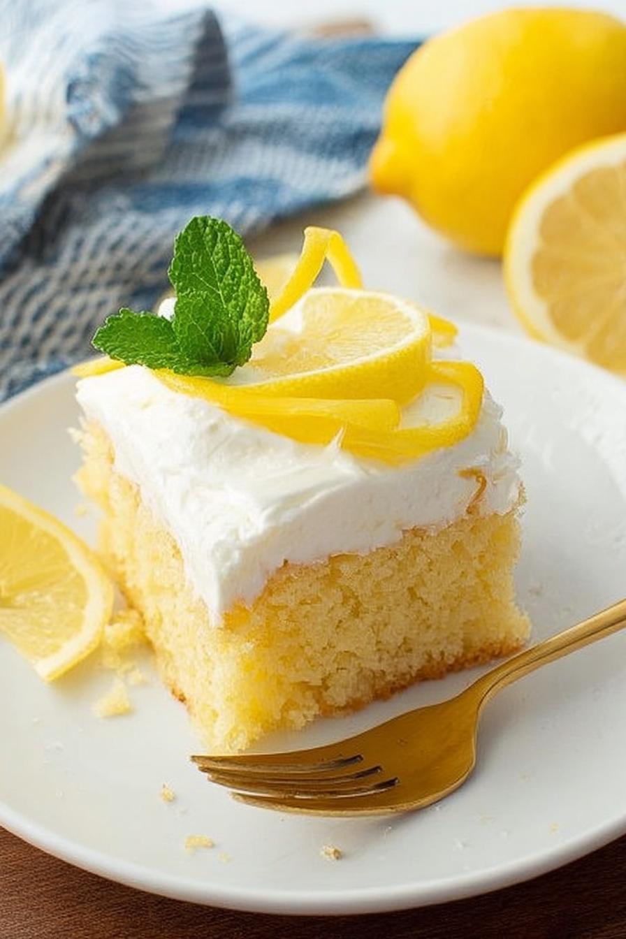 Uma variação rápida e refrescante de bolo amarelo com toque cítrico. Combina massa úmida feita com suco de limão natural, perfurada para absorver uma mistura líquida de pudim instantâneo de limão. Recheado, gelado e finalizado com cobertura cremosa de chantilly e limão. Técnica detalhada para evitar erros comuns, dicas para textura ideal do pudim, tempo no forno adaptado para fartura e visual atraente. Serve 16 porções generosas, ótimo para reuniões ou sobremesas de verão, com toque especial que muda a trama comum do tradicional poke cake.