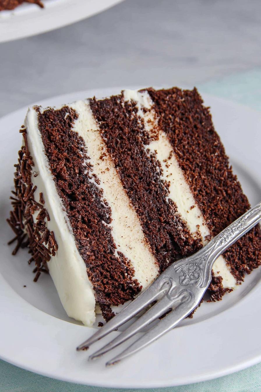 Bolo de chocolate em três camadas, com massa aerada equilibrada entre cacau e buttermilk. Cobertura de cream cheese e manteiga, textura untuosa, açúcar de confeiteiro dosando a doçura. Técnica fácil, resultado surpreendente. Dividir massa uniformemente evitando excesso de mistura para manter leveza and textura macia. Cobertura ajustada para espalhar fácil, brilho sutil, balanceando doçura e acidez. Ideal pra quem já dominou o básico do bolo e quer arriscar camadas e sabor mais complexo.