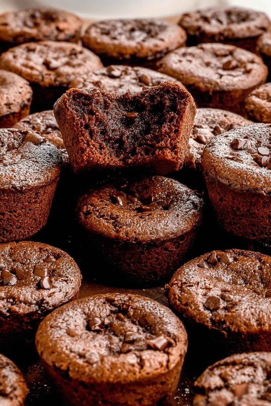 Pedacinhos de brownie em forminhas mini muffin, com uma textura úmida e intensamente achocolatada. Usei açúcar mascavo ao invés do branco, que deu uma doçura mais redonda e aroma extra. Troquei o fermento por bicarbonato para uma leve explosão na massa, sem deixar muito inchado – só aquela leve elevação. O toque especial ficou nas nozes picadinhas, que oferecem crocância e contraste ao chocolate derretido. Perfeitos para servir na mesa, um passeio rápido na boca. Ficar de olho no forno é essencial; aparece aquela casquinha fina, quase rachando, e o centro ainda meio macio – aí está na hora certa. Aprendi a dosar o tempo com aroma do cacau queimando levemente e aquele som crepitante dos chips derretendo.