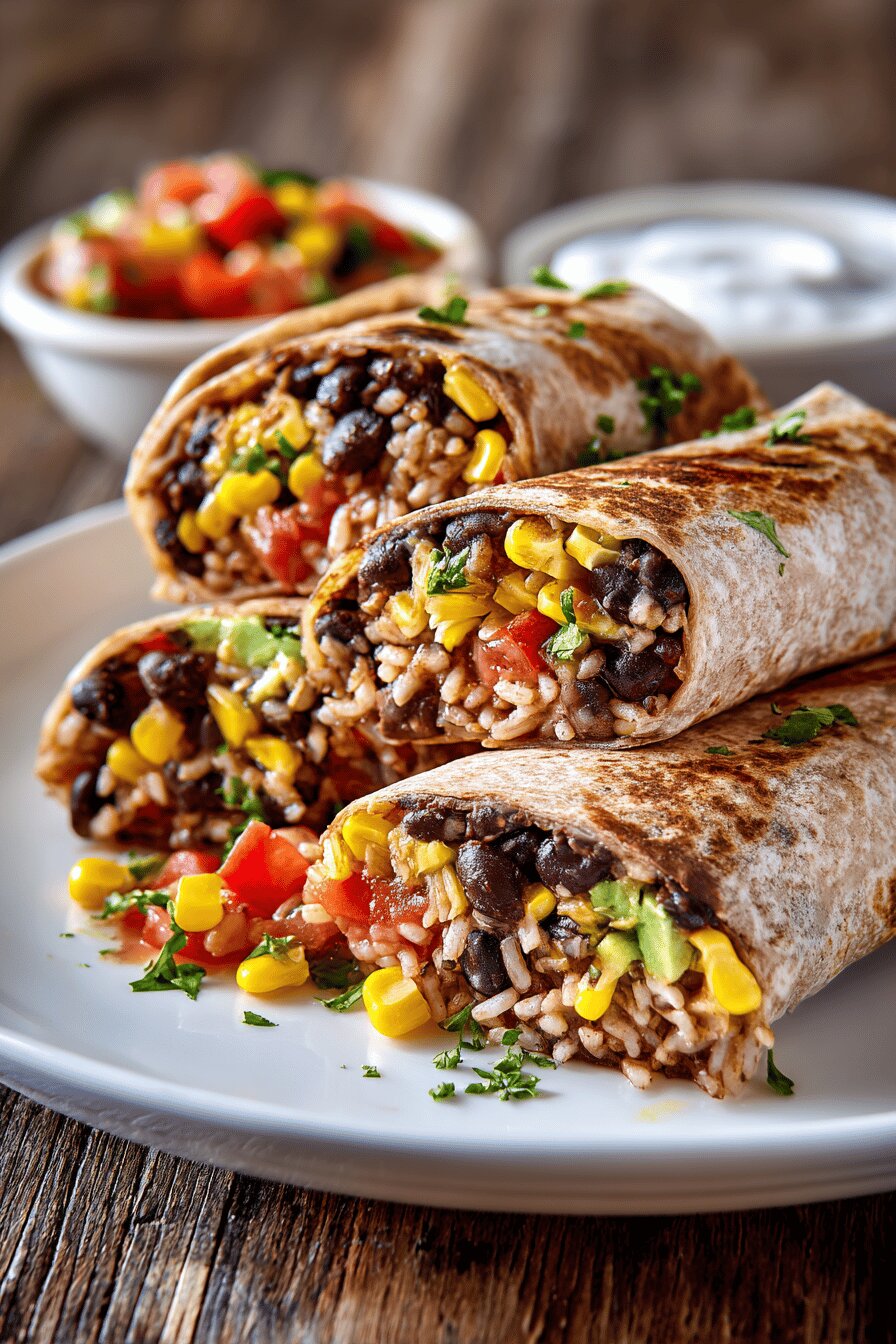Burritos veganos com feijão preto amassado, arroz integral basmati, pico de gallo fresco e abacate cremoso. Combina texturas rústicas e sabores vivos, fácil adaptação para intolerantes a lactose usando queijo vegano e toque de pimenta para quem gosta de calor. Versão que aprimorei misturando milho doce congelado para crocância e vitalidade. Uma explosão simples, colorida, com identidade mexicana e toque acessível no preparo caseiro.