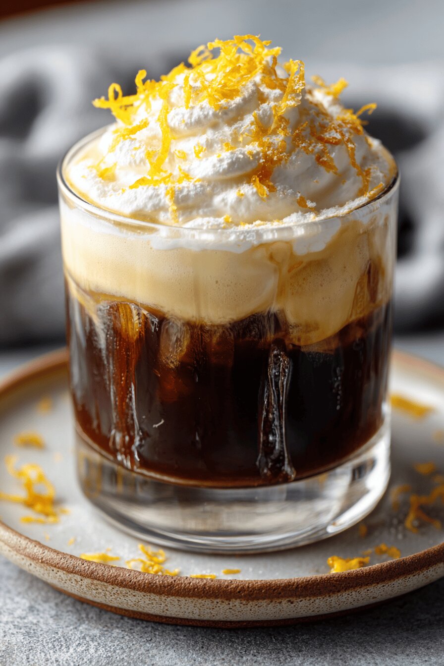 Sobremesa gelada com café espresso forte, creme chantilly batido na hora com açúcar de confeiteiro, bolas generosas de sorvete meio a meio (baunilha e café), finalizado com toque suave de baunilha e uma pitada de canela para surpresa.