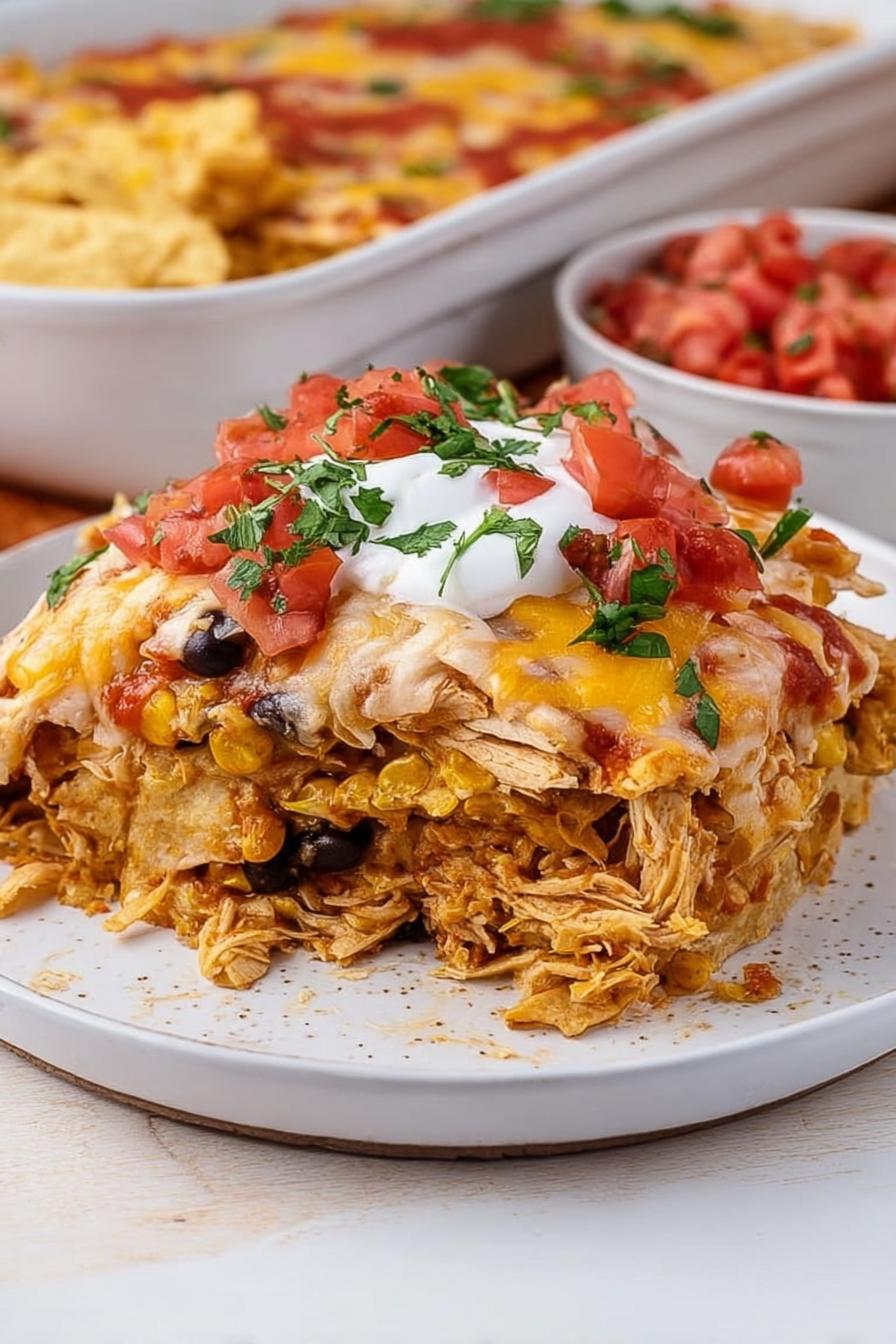 - 💡 Escolha tortilhas crocantes. Espalhe as camadas com cuidado. Assim, a crocância do fundo se conserva. Tente não deixar encharcar. Isso estraga a textura boa da tortilha. Frango desfiado é vital. Use o que sobrou do almoço ou até do jantar anterior. O sabor ganha muito.