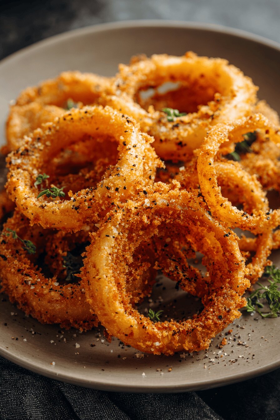 Anéis de cebola crocantes, banhados numa massa com cerveja e fritos até dourar. A combinação de farinha com o amargor sutil da cerveja cria textura leve e sabor intenso. Temperado com toque de pimenta caiena para dar aquele up, feito para servir quente e sequinho, perfeito pra petiscar. Receita vegana, sem lactose nem ovos, fácil de adaptar, garante crocância e aroma irresistível.