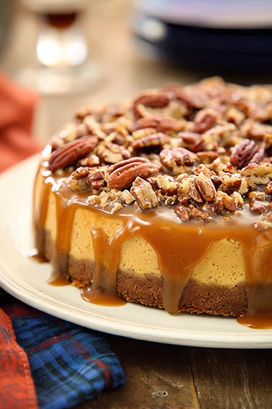 Cheesecake de Abóbora com Nozes e Calda de Maple