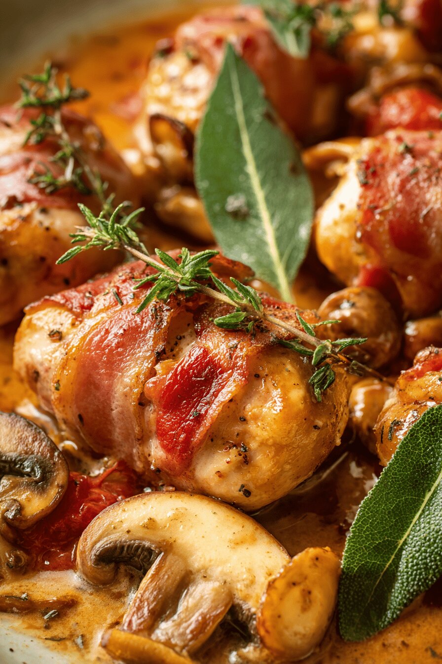 - 💡 Preparar o forno antes. 175 °C é o ideal. Temperatura constante. Isso ajuda a cozinhar uniformemente. Amarrar a pancetta com cuidado. Não apertar demais. Assim a carne mantém suculência e não se desmancha. Selar é crucial. Aqueça bem a frigideira. Alta temperatura forma crosta. E preserva interior macio. O tempo é tudo. Dourar os cogumelos não é pressa. Até evaporar água. A textura e sabor aparecem.