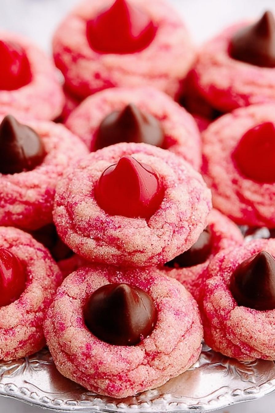 Biscoitos macios de cereja enrolados em açúcar rosa, com um toque de amêndoa e um chocolate Beijo no centro. Receita com leve modificação: suco de cereja reduzido em 5% e troca da farinha comum por farinha de amêndoas. Cozimento controlado para evitar bordas queimadas, revelando rachaduras finas. Ideal para quem curte textura úmida e aroma frutado com pitada de castanha. Mistura cores vibrantes com sabor delicado, ótima para festas ou um café da tarde diferente.