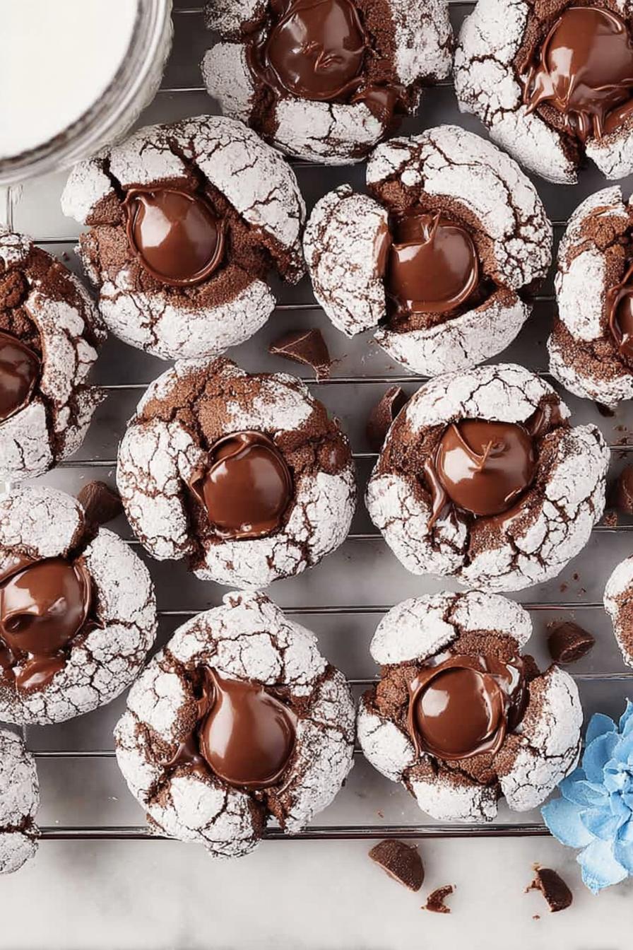 Biscoitos macios com toque de menta, cobertos por chocolate que derrete na hora, criando aquela poça gostosa no centro. Massa feita com farinha, cacau e um mix de fermentos para leveza. A surpresa vem na cobertura: substituí o clássico Hershey’s kiss por bombons de chocolate meio amargo com menta, que amolecem e escorrem de forma irresistível. A mistura do açúcar granulado com o mascavo garante um caramelo sutil, sem pesar demais. Resfria a massa para firmar e evitar espalhar demais no forno. Crocância nas bordas, umidade no meio, aroma que invade a cozinha. Aprenda a reconhecer o ponto certo, e se faltar açúcar de confeiteiro, farinha de arroz pode salvar a textura.