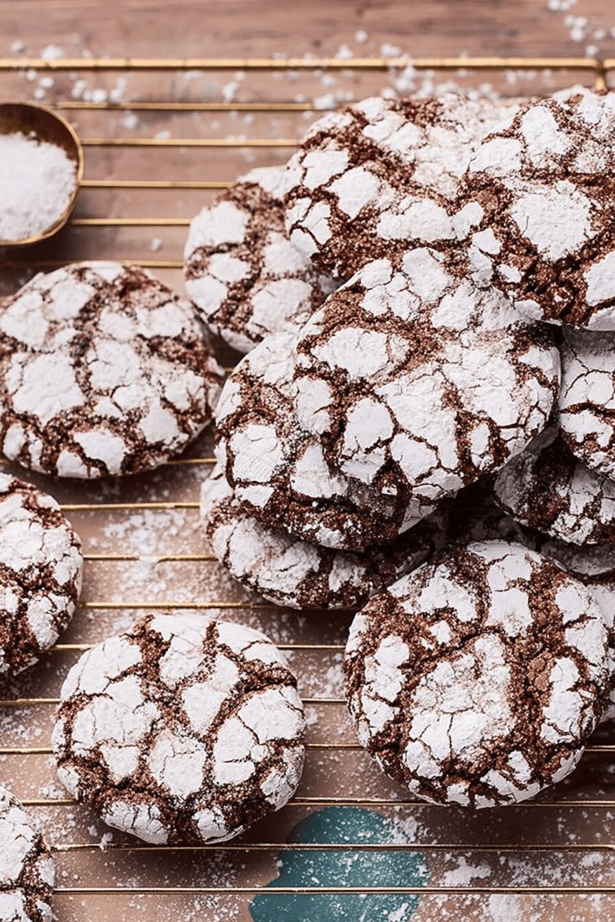 Peneirar cacau junto com farinha nunca falha. Já fiz várias variações até acertar o ponto de textura que não gruda demais nem seca. Trocar o óleo vegetal por óleo de coco deu uma aveludada inesperada, sem se tornar enjoativo. Descansar a massa transforma completamente – além de reidratar o cacau, a geladeira faz os ingredientes se assentarem e o resultado é crocante por fora, macio e levemente fudgento por dentro. Evito excesso de açúcar para não competir com o chocolate, então uso açúcar cristal para contraste e o açúcar de confeiteiro por cima para o efeito visual com as rachaduras brancas. Cada mordida é uma surpresa que vem da simplicidade e dos truques de paciência e sensação.