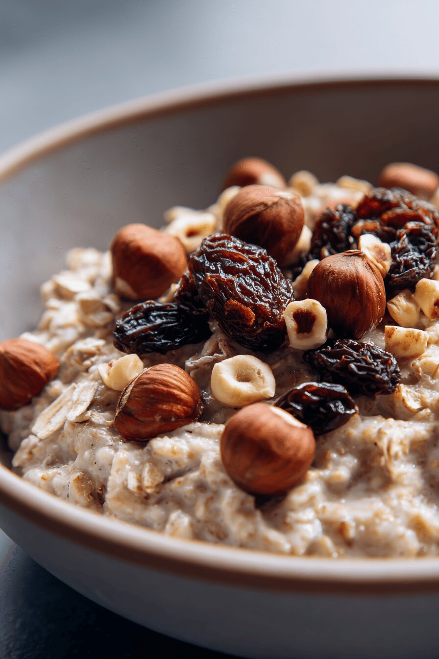 Começa com aveia moída. Água quente, canela e uma pitada de sal. Sem pressa, fogo médio-baixo, mexendo de vez em quando pra não grudar. Vai engrossando, ficando denso com textura boa. Melado de cana substitui o xarope de bordo tradicional, mais rústico, menos doce. Tâmaras comuns no lugar das medjool — disponíveis fácil no Brasil, mais baratas. Castanhas-do-pará ao invés de nozes. Dão crocância e sabor diferente. Pronto para café ou chá, cafézinho coado fresquinho. Receita completa, vegana, sem glúten, sem leite. O brunch pede. Tem toque brasileiro. Tostado, especiarias leves, rimando com clima mais frio ou manhã preguiçosa.