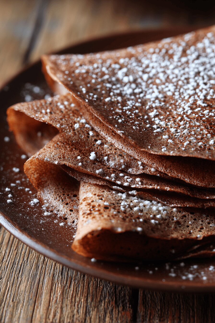 Comece peneirando ingredientes secos para evitar grumos e distribuir uniformemente o cacau pelo crepe. Separe os ovos, bata as claras em neve para dar leveza à massa, isso cria bolhas de ar que fazem os crepes mais macios. Misture com calma os líquidos, incorporando lentamente para não formar grumos ou desenvolver demais o glúten. Use uma frigideira antiaderente de 20-23cm para manter o controle da espessura do crepe. Untar com manteiga ajuda o crepe a desgrudar e a dourar levemente, mas use pouco para evitar excesso de gordura na massa. O tempo de cozimento deve ser de 30-40 segundos por lado; o crepe deve estar firme mas flexível para não rasgar. Guarde em forno baixo para manter a temperatura e evitar que ressequem ou esfriem enquanto prepara o restante. Sirva com recheios frescos, doces ou salgados, conforme seu desejo.