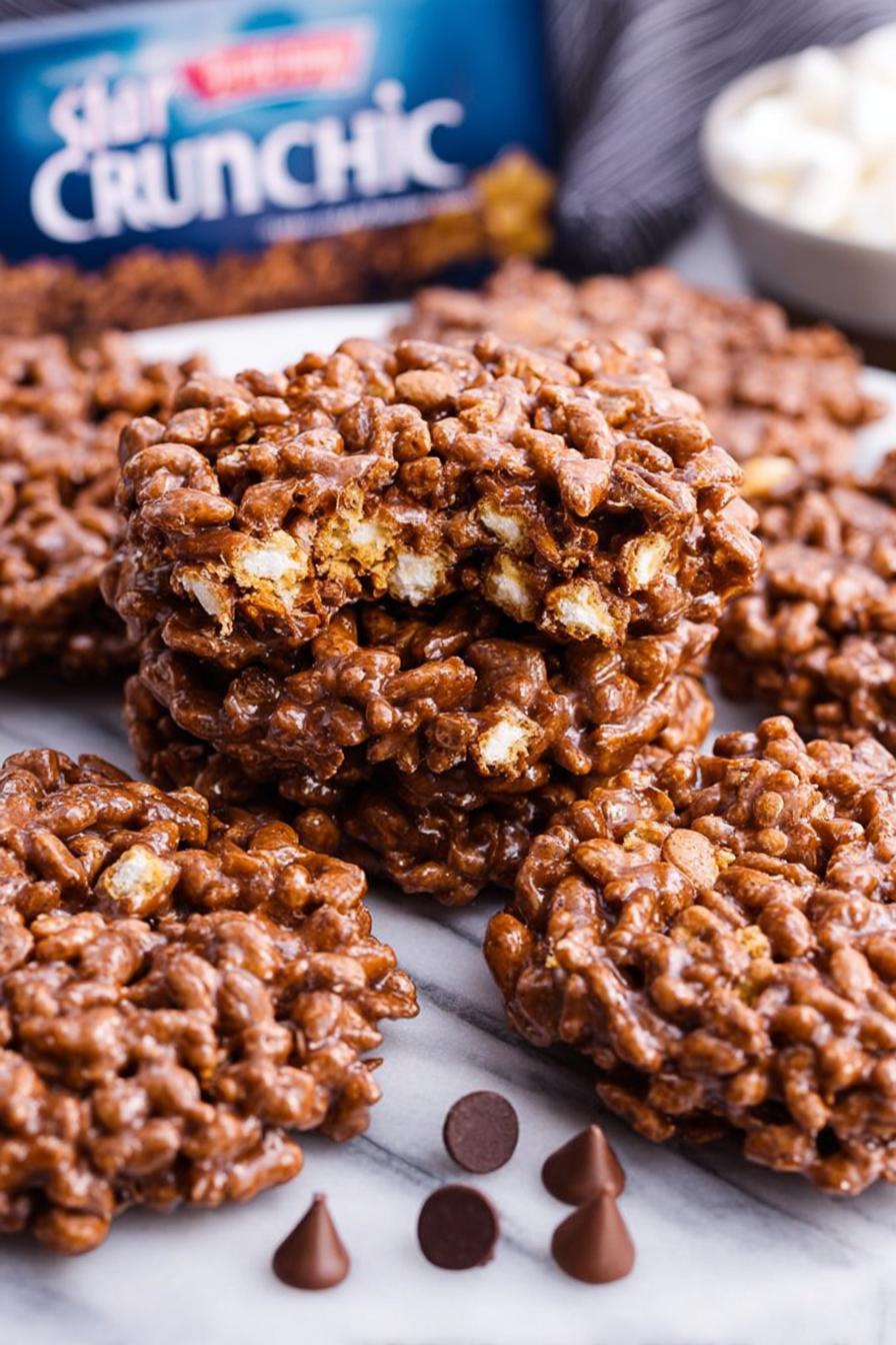 Use manteiga com sal para intensificar o sabor, mas manteiga sem sal também funciona, só ajuste o sal da mistura final. Cacau em pó deve ser de boa qualidade para evitar amargor exagerado. Café expresso em pó é opcional, muitos pulam, mas acho que traz um amargor sutil importante. Balas de caramelo macias espalham dulçor e textura; se só tiver doce de leite, experimente, muda o perfil e fica menos caramelizado, mais cremoso. Marshmallows pequenos derretem mais rápido; evite grandes para manter a textura uniforme. Troque o cereal de arroz tufado por outra cereal leve, mas não use granola, fica pesada demais. A quinoa tufada é um toque pessoal, boa pra variar texturas.