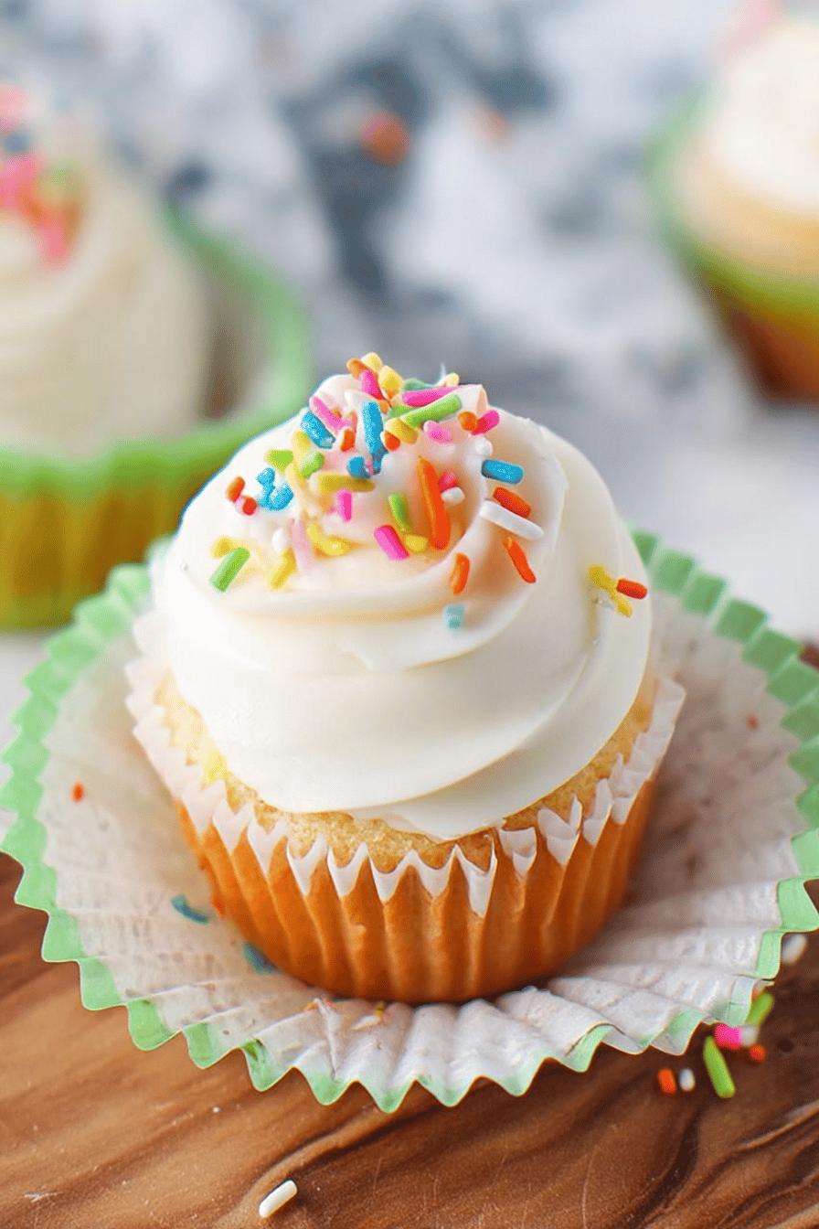 Um bolo de cupcake de baunilha para poucas porções, onde o leite quente ajuda a amolecer a manteiga para textura mais macia. O fermento em pó e uma pitada de sal equilibram o sabor. Cobertura cremosa feita com manteiga e açúcar de confeiteiro, ajustável com creme de leite para espalhar fácil. Ideal pra quem quer algo rápido, gostoso e sem sobrar demais. Dá pra usar iogurte natural no lugar do leite, e trocar a manteiga por óleo vegetal sem grandes problemas. O forno precisa estar quente, cupcakes prontos quando douram levemente e o teste do palito sai limpo, mostrando que a massa assou por dentro.