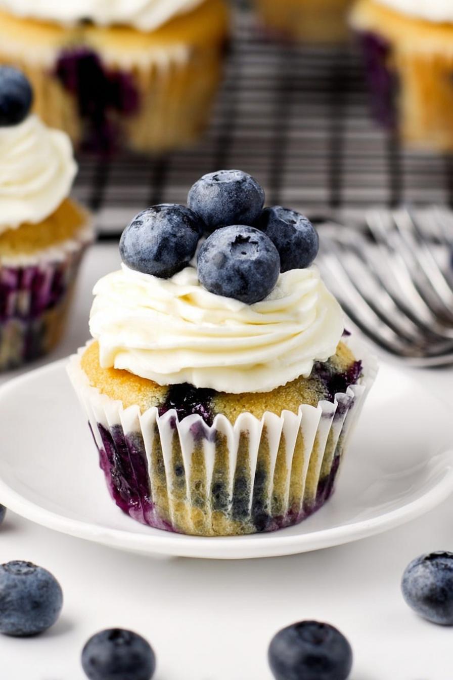 Cupcakes macios e úmidos recheados com mirtilos frescos, envoltos em uma cobertura cremosa de cream cheese. A mistura da farinha, fermento e buttermilk traz leveza e textura ao bolinho. O segredo está no jeito de incorporar os ingredientes e na delicadeza para não estourar os frutos, deixando um sabor fresco e cítrico com doçura equilibrada. O toque do óleo junto com manteiga garante um miolo perfeito, e a cobertura com açúcar de confeiteiro peneirado é batida até ficar fofinha, dando acabamento elegante. Um clássico americano adaptado com um toque pessoal que lutei para equilibrar sem deixar pesado ou seco.