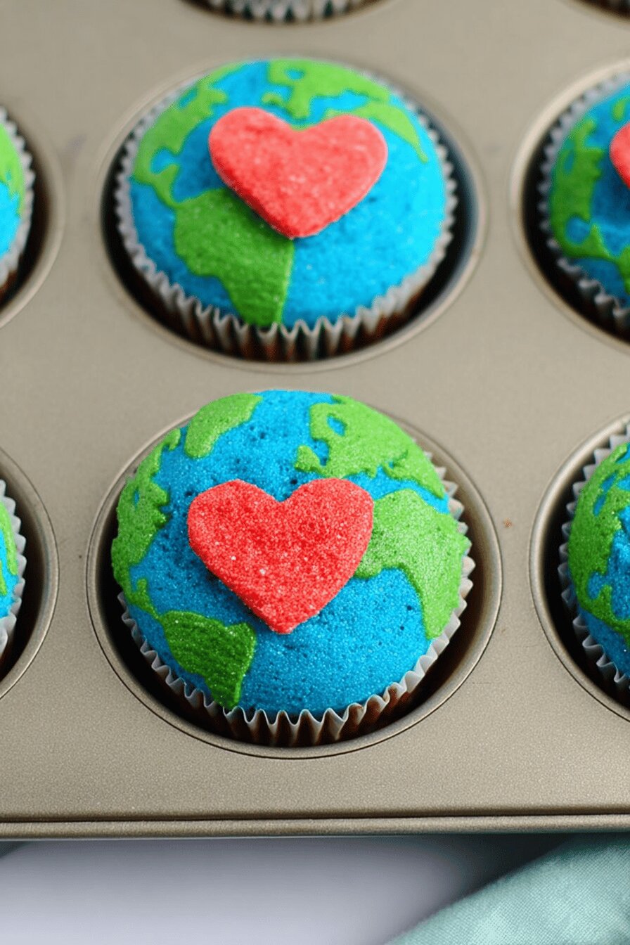 Nada como pulos no olho com cupcakes que imitam a Terra vista do espaço. Verde do planeta, azul dos oceanos, corações vermelhos pra dar vida. Essa receita é uma dança de cores e texturas, brinquedo de montagem e paciência. Dá para perceber o cheiro da baunilha no ar, pista do que vem pela frente. Troquei ovos inteiros por claras para deixar mais leve, e a cobertura vermelha ganha um banho de açúcar cristal que faz aquele barulhinho crocante na primeira mordida. Sensações que ficam, memórias que voam na cozinha. A receita é quase um exercício de controle sobre cores e tempo – mistura demais, perde a mágica; tempo errado, perde a maciez. Tem que sentir, esperar e aproveitar cada passo.