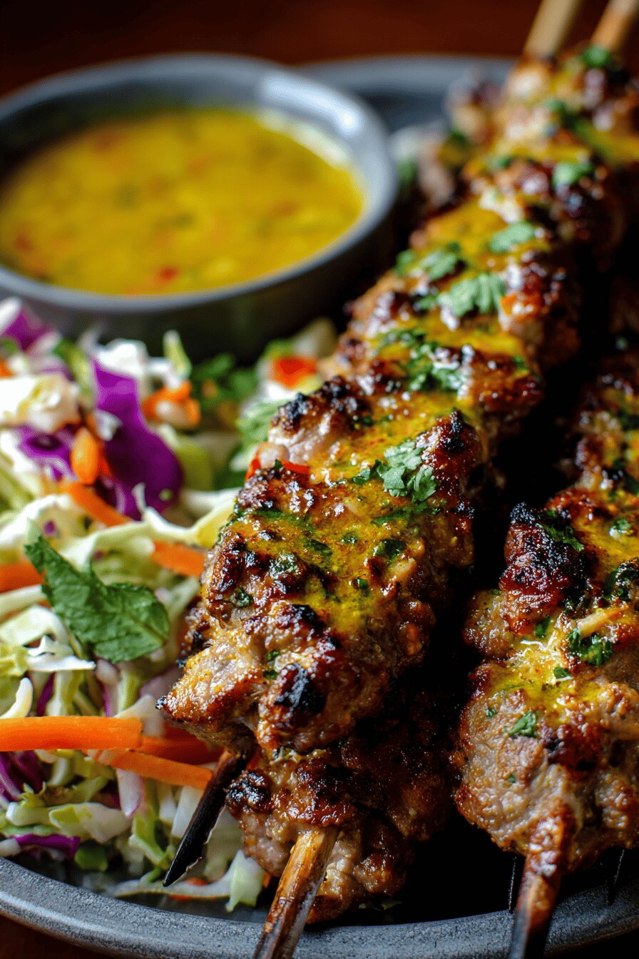 Espetinhos suculentos, sabor intenso que mescla gengibre fresco com o capim-limão aromático. Picância leve da pimenta dedo-de-moça, açúcar mascavo traz a doçura caramelizada. Porco moído com toques asiáticos, só que solto na fibra, não muito duro. Rápido para montar, seu jeito de fazer churrasco com alma diferente, um toque novo que puxa para o paladar tropical, Brasil encontra Vietnã. Textura crocante das castanhas, contradiz a maciez da carne, interessante de mastigar. Crucial marinar mistura, a carne absorve rápido, vai ficar molhadinha sem ficar encharcada. Não precisa muito tempero, porque o molho já faz tudo. Dá para repetir e pensar em variações, criar uma festa em casa, só com essas brochettes. Servir com salada fresquinha, algo com crocância, evita enjoar. Perfeito para tardes de domingo, cerveja gelada e papo solto.