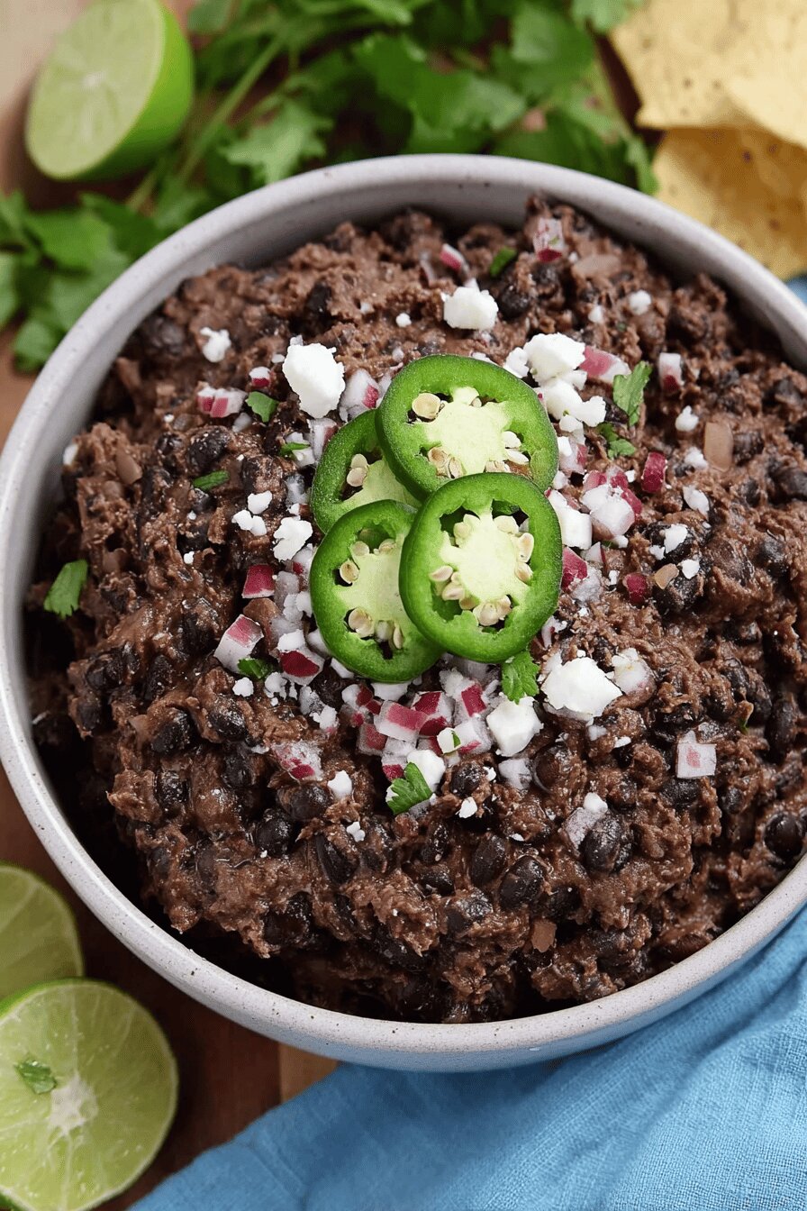 Feijão preto refrito, prática que traz sabor e textura intensa. Troque óleo vegetal por azeite de oliva extra virgem para toque mais rico. Use páprica defumada em vez de cominho pra uma pegada diferente. O feijão vai de duro a macio, tomando tempo e atenção. Amasse com pegada e jeito, não muito liso; textura importa. Jalapeño garante picância viva, o queso fresco agrega frescor. Simples, nada rebuscado, resultado que desliza fácil em tortilhas, arroz ou direto na colher. É receita raiz, comida de rua e de casa, sem enrolação. Aprendi a evitar muita água pro feijão não virar sopa, foco na textura.