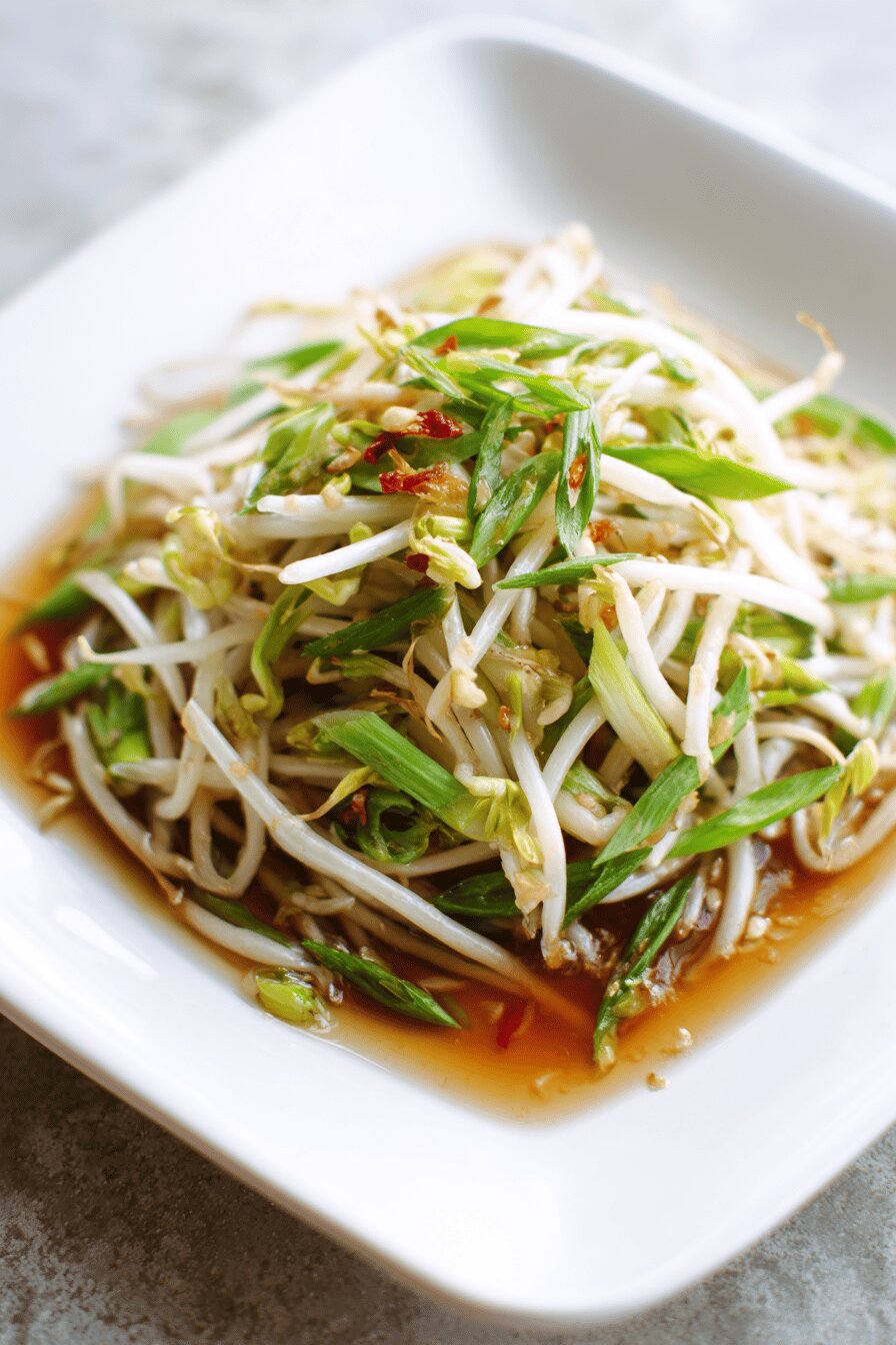 - 💡 Fèves germinadas firmes são obrigatórias. Não use brotos murchos. Acredita, com certeza não fica bom. Branqueie rápido, um minuto e pouco, só pra dar aquele choque. Se passar, textura mole. Cuidado total com o tempo. Descarte água bem, secar é vital.