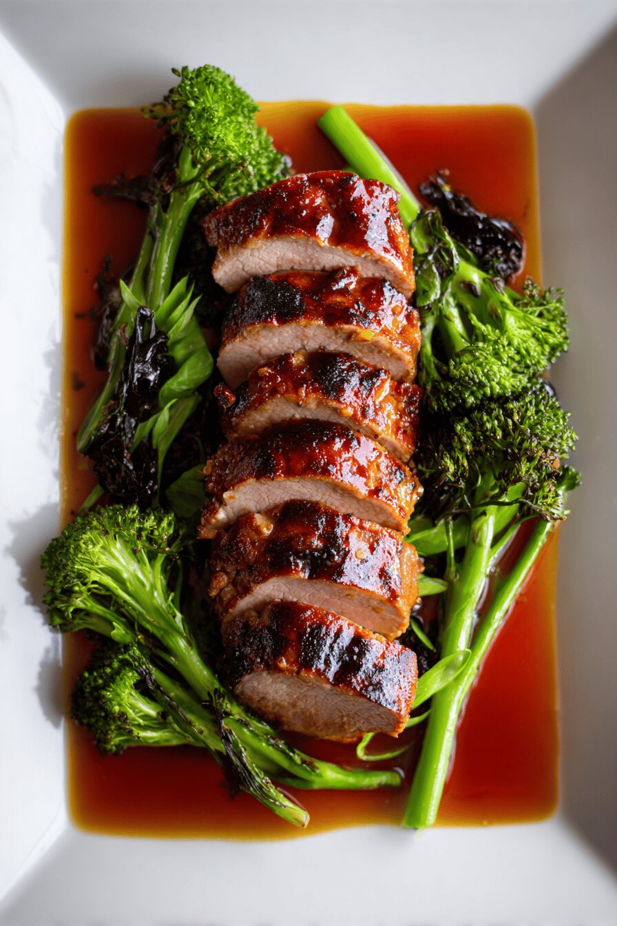 Filés de porco marinados em uma mistura cítrica com tamarindo e soja. Marinada adocicada com toque de gengibre fresco e molho hoisin, transformada em molho reduzido para acompanhar a carne suculenta. Grelhado no barbecue até ponto rosado, finalizando com descanso para manter suculência. Versão modificada com menos açúcar, mais suco de laranja e troca do molho hoisin por molho de peixe, adicionando um toque thai. Acompanhado de brócolis salteados no wok – combinação de sabores e texturas marcante, prática e cheia de nuances.