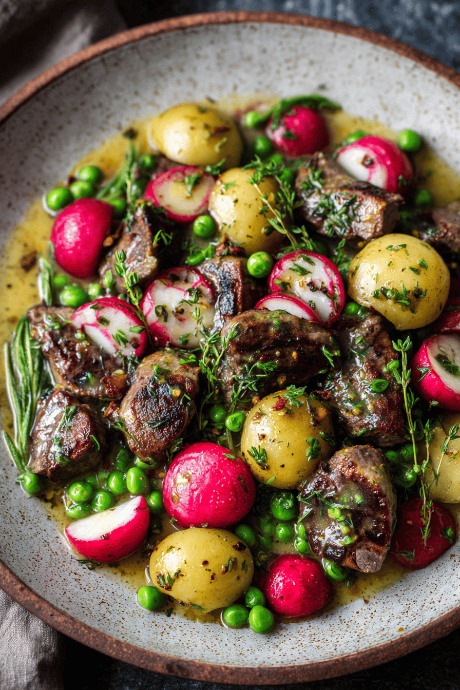 Use batata baroa ou mandioquinha que é mais comum e saborosa aqui no Brasil. Cenoura no lugar do rabanete, ervilha fresca é opcional, mas muda muito pra melhor. A manteiga pode ser substituída por azeite extra virgem para versão mais leve, porém perde a textura untuosa no final. Coxa desossada foi escolha prática — fígado exige cuidado extra e algumas pessoas torcem o nariz. No vinho, se não tiver vinho branco seco, cachaça envelhecida equilibra bem o molho com toque próprio. Salgar legumes no final evita amolecimento exagerado. Se quiser, uma pimenta do reino moída na hora dá um aroma especial e mantém o prato animado.