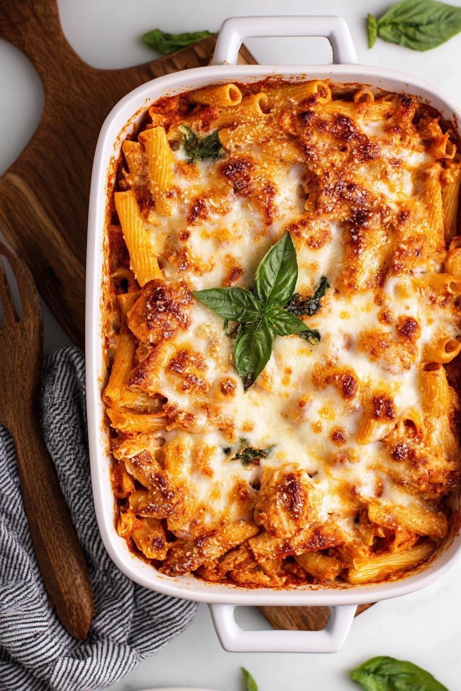 Ziti cozido com toque de ricota e manjericão, frango temperado e cozido na frigideira. Molho marinara enriquecido com água do cozimento da massa, garantindo cremosidade. Finalizado com mozarela e parmesão gratinados no forno, criando camada dourada e borbulhante. Receita para 8 pessoas, prática, com dicas para ajustar ingredientes e evitar erros comuns, como a massa empapada ou frango ressecado.