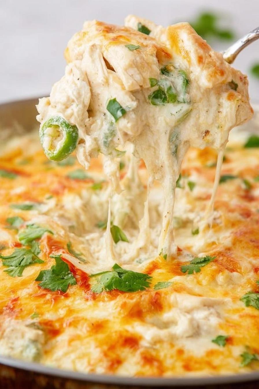 Combinação cremosa de frango, queijo e tortilla de milho em uma única panela. Passa pelo refogado de cebola e alho, engrossa molho com farinha e especiarias, cozimento lento do peito até ficar macio. Depois, desfiado, leva queijo cremoso, sour cream e coentro fresco. Tortilla integra a mistura, fundindo texturas antes de gratinar com mais queijo e toque picante. Finaliza com abacate e ervas, cor vibrante. Rápido para fazer, ideal para dias que precisam de comida com cara de feita, sem complicar.