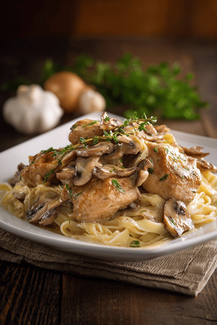 Comece dourando o frango para selar os sucos, isso é crucial pra evitar carne seca. Ao refogar cebola e alho, preste atenção no aroma para não deixar queimar, sinal de atenção na cozinha. Cozinhar os cogumelos até líquido evaporar transforma o sabor e impede molho aguado. Farinha ajuda a espessar sem precisar reduzir demais o líquido, assim mantém textura agradável e sabor concentrado. À medida que o vinho e caldo cozinham, frango absorve aroma, fica suculento, além de incorporar cremosidade ao molho na etapa final. Mexa ocasionalmente, troque o ponto quando notar que o molho engrossou e frango está macio. Guarde o que sobrar num recipiente fechado, reaquecido lentamente, mantém a consistência.