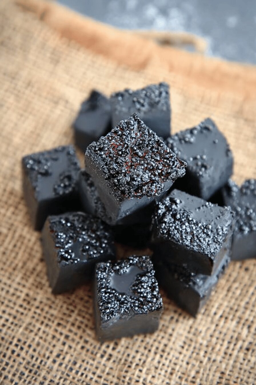 Fudge de chocolate branco com leite condensado, manteiga e essência de baunilha, tingido com corante preto para imitar carvão de Natal. Tradicionalmente feito em forma quadrada, pode levar enfeites metálicos. Textura cremosa, aroma doce com toque amanteigado. Receita para 16 pedaços, dica para não queimar e respeitar o tempo em altitude elevada. Aprenda a reconhecer os pontos pelo visual e textura, substituições e truques para evitar erros comuns. Modo prático e com variações para deixar o fudge original e interessante.