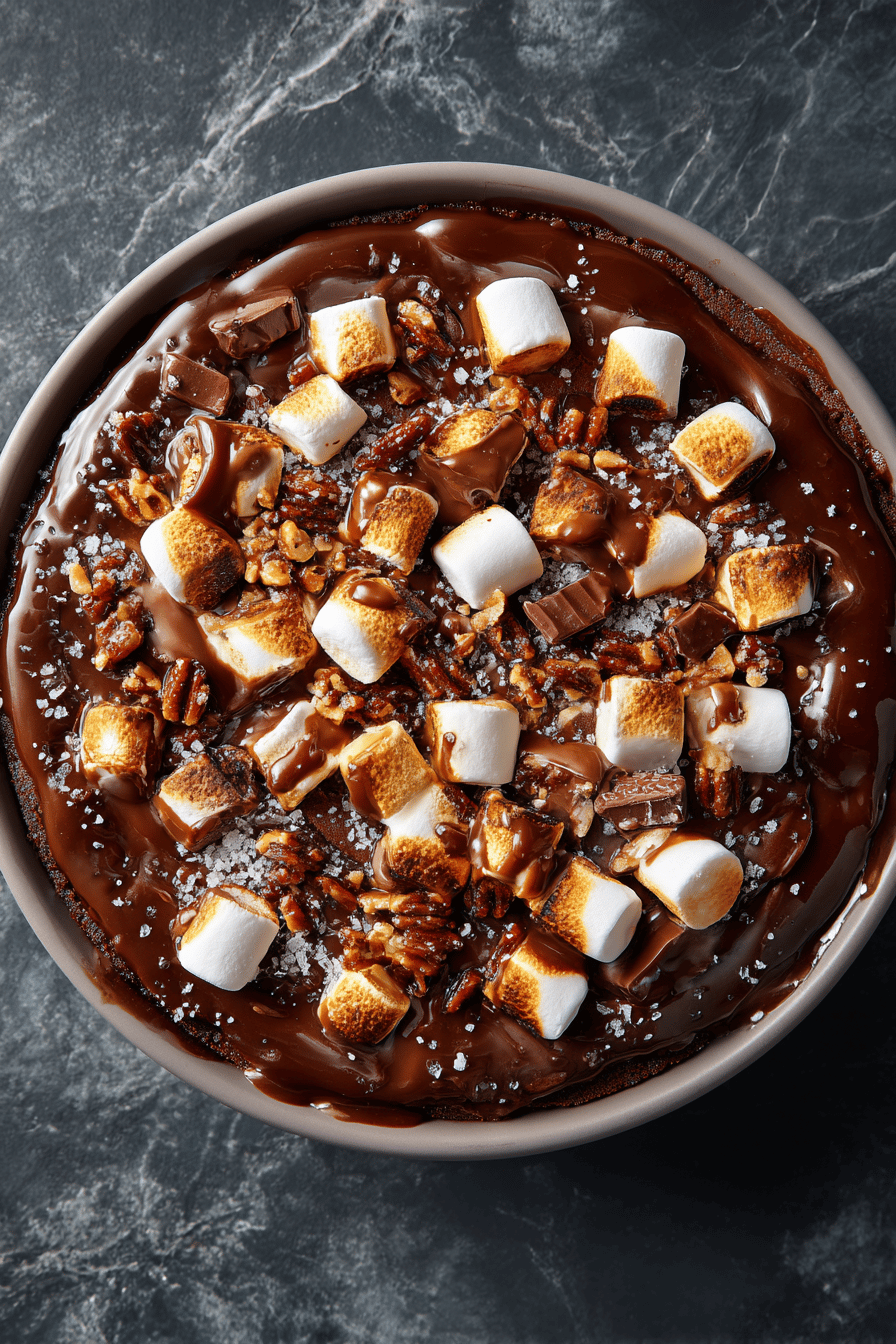 Fudge cremoso com nozes pecan torradas, guimauves derretidas e chocolate meio amargo, com toque de canela e essência de baunilha. Receita vegetariana, sem glúten e sem ovos, ideal para quem gosta de doce com textura macia e pedaços crocantes. Substitui creme tradicional por leite de coco para um toque diferente e menos gordura. Mistura o sabor adocicado e levemente tostado das pacanas com o dulçor leve das guimauves pequenas. Aprenda a sensorizar ponto do fudge pelo brilho da mistura e pela firmeza na hora de cortar. Receita adaptada para tempos flexíveis e atenção nos detalhes, evitando cristais de açúcar e fudge quebradiço.