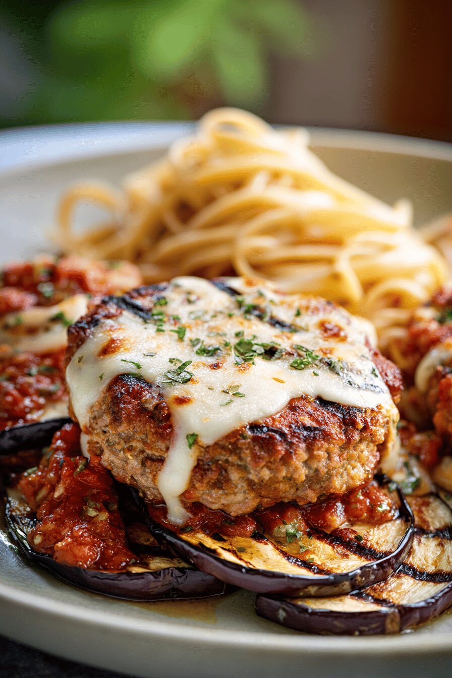 Galettes de porco temperadas com ervas, douradas na frigideira, cobertas com fatias de berinjela e queijo gratinado, acompanhadas de molho de tomate rápido e linguine ao alho. Ajustes nas quantidades e passos para mais sabor e textura, incluindo troca da salsa pelo orégano fresco e pitada extra de calor. Técnica focada em reconhecer o ponto certo pelo aroma e aparência, além de dicas para evitar berinjela amarga ou massa empapada. Receita com toque mediterrâneo e jeito brasileiro, prática e saborosa para o dia a dia.