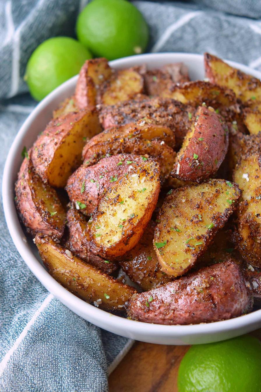 O óleo pode ser canola, girassol; o ideal é um que suporte altas temperaturas sem queimar ou soltar cheiro forte. A páprica picante acrescenta cor e aroma, assim como a substituição parcial do chili por cominho, mais terroso e quente, traz complexidade. O açúcar mascavo ajuda a caramelizar a casca, sem deixar doce demais, equilibra com as especiarias. Batatas boas para assar são as tipo A, vermelhas ou Yukon Gold; evite as muito grandes que demoram a cozinhar e cortam difícil. Prefira batatas de tamanho uniforme para que cozinhem na mesma velocidade. O sal deve estar bem distribuído, mas não exagere – controla o ponto de sabor. Pimenta do reino moída na hora melhora o aroma, importante na mistura.