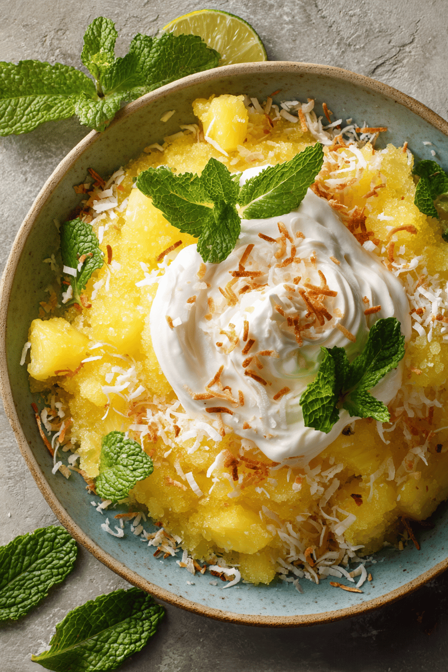 Não é toda hora que a gente quer coisa pesada ou mega adocicada. Um granité refresca – aquele choque gelado, crocante e leve, que se desfaz na boca. Testei variações com várias frutas, mas o abacaxi maduro tem um frescor e acidez natural que corta o açúcar e o álcool na medida certa. Essa receita nasceu da ideia de usar a cachaça branca – brasileiríssima, aroma floral, que combina com o tropical. Baunilha não é só perfume, é um jeito de suavizar o ácido do limão. Gosto de texturear com coco tostado porque acrescenta crocância diferente, uma surpresa que funciona bem. Nada de pressa: o segredo do granité está em paciência no congelador e cuidado no bate-chantilly.