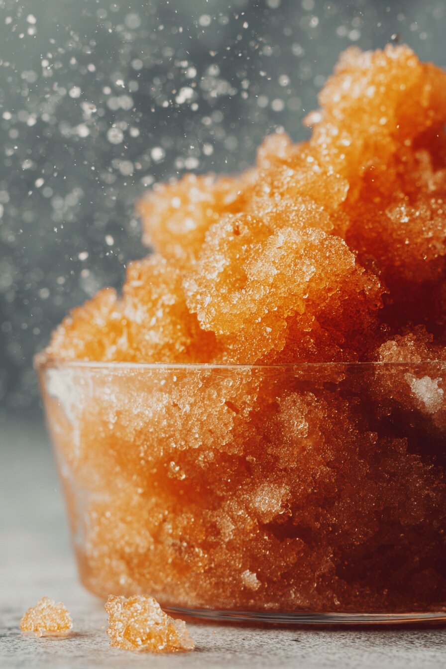 Granité. Refrigério na tigela, textura que estala, devagar vai derretendo. Água de coco ou suco de abacaxi? Um toque do Brasil, nada de cidre. A mistura doce picotada, congelada, rasgada com garfo. Impressiona simples. Sem ovos, leite, nem glúten. Para dias quentes, almoço leve, saída rápida. Menos de uma hora e pronto, mas o segredo está no congelamento, na espera. Mistura de sabores tropicais, frescor que explode no paladar. Servido em copinhos ou taças, gelado e frágil. Dá para brincar com frutas, especiarias, tudo permissivo. Aqui, passo a passo enxuto, vestindo simplicidade, quebrando gelo. Pronto para soltar no verão.