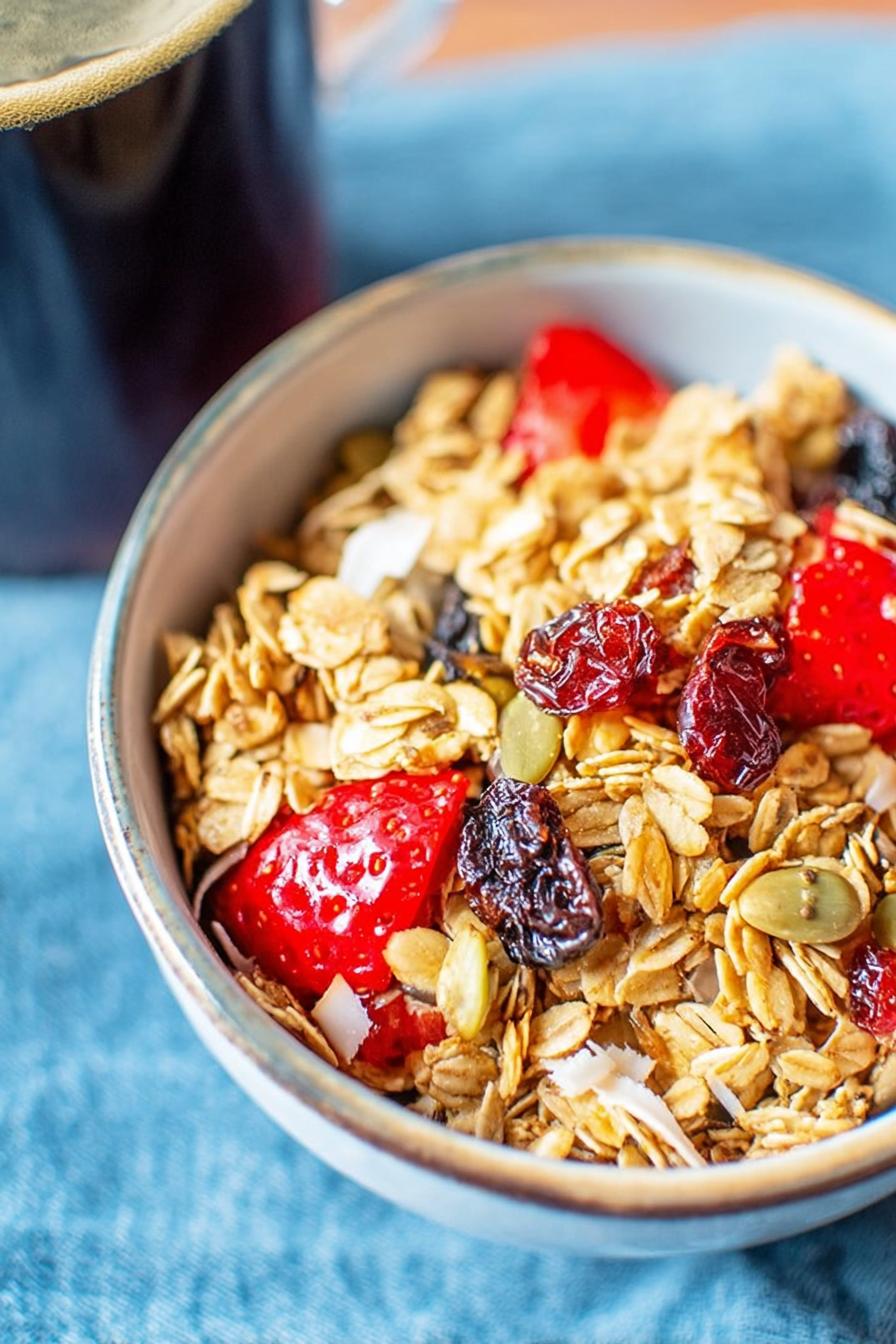 Maioria erra o ponto da granola porque usa só temporizador; o segredo está em sentir a textura e enxergar a cor mudando de clara pra dourado intenso. Mexer após o primeiro bake é fundamental; evita que queime só um lado e ajuda a formar pedacinhos firmes, mas sem virar bloco duro. Pressionar a mistura suavemente cria uma crosta firme que depois se solta em pedaços crocantes na medida. Fique atento para não deixar o coco queimar, ele muda rápido e escurece demais em pouco tempo. Esfriar é tão importante quanto assar — quente, a granola está mole e perde crocância. Gosto de deixar na assadeira mesmo pois mantém o formato e permite que o vapor evapore lentamente. Pode armazenar em pote hermético, assim mantém frescor por dias; se ficar meio murcha, um pulinho rápido no forno salva.