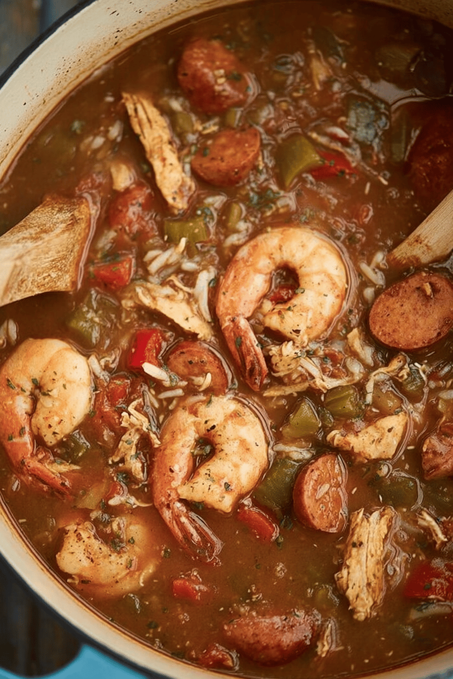 No preparo do roux, paciência é essencial; mexe forte e constante para evitar queimar e formar grumos. A cor chocolate ao leite é a pista para não passar do ponto. Na hora de refogar os vegetais, controlar o fogo para que cozinhem sem dourar demais, preservando aroma e suavidade. O cozimento do caldo deve ser feito em fogo baixo para permitir redução gradual, garantindo textura e sabor. Para dourar a linguiça, use fogo médio para criar crocância sem queimar. Na etapa final com o frango e quiabo, mexa com cuidado para não desmanchar o frango e não deixar o quiabo virar baba demais. Camarão no fim, com panela desligada, aproveita o calor residual; cozimento rápido mantém maciez. Sempre experimente temperos antes de servir para ajustar do seu gosto. Ideal servir fumegante com arroz branco clássico e pitadas de molho de pimenta para quem curte ardido.