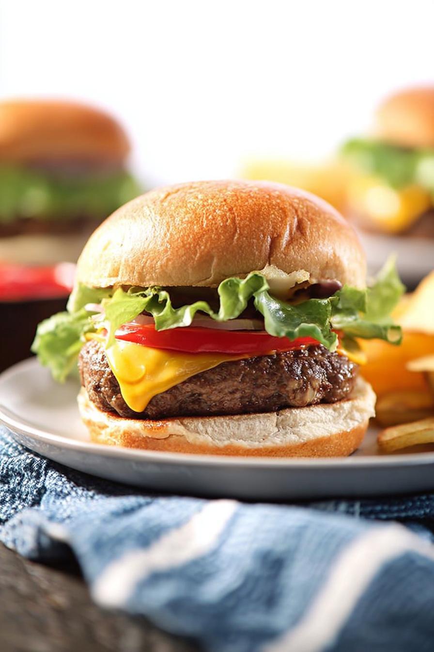 Visual é chave, crosta dourada, e teste com termômetro. 60 a 65 graus garante um hambúrguer suculento.